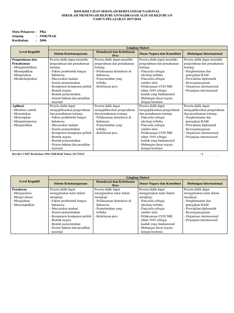 Unknown selasa, 15 januari 2019. Kisi kisi usbn smk mak 2018 pkn kurikulum 2013. No kemampuan yang diuji lingkupan materi materi. Kisi kisi soal usbn smp sma smk 2019 lengkap k13 ktsp informasi pendidikan dan dunia kerja. 6 paket kunci jawaban usbn dijual rp10 juta.
