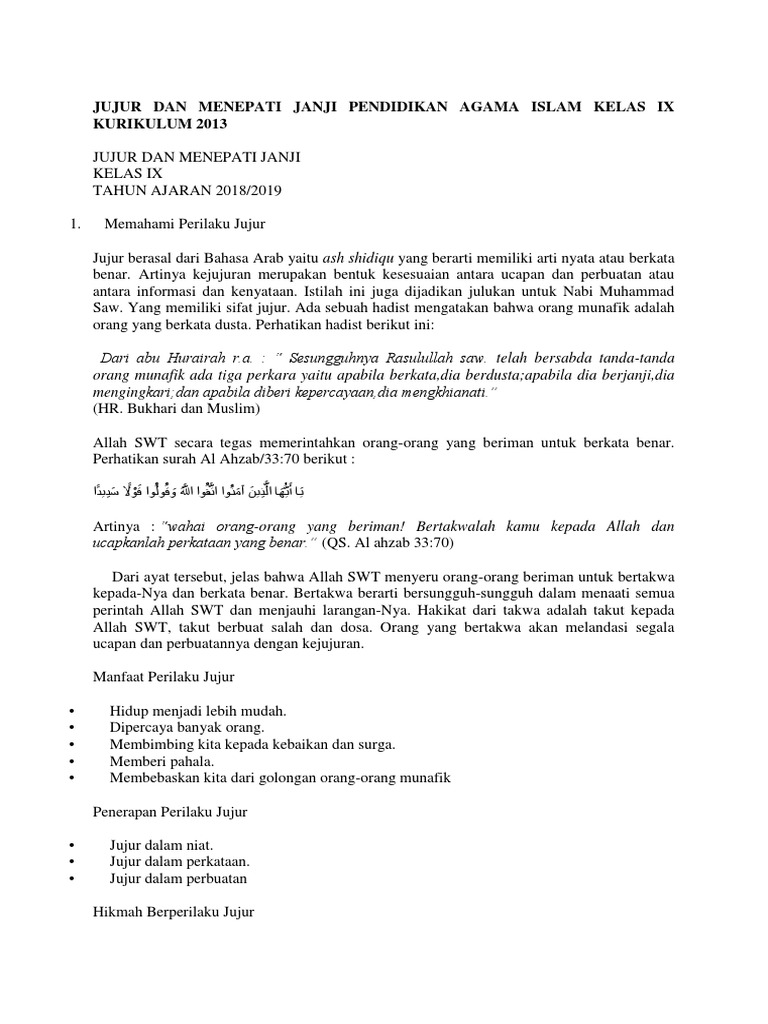 Materi Jujur Dan Menepati Janji Kelas 9 Ppt / Jujur Dan Menepati Janji Religious Studies Quizizz : Maybe you would like to learn more about one of these?