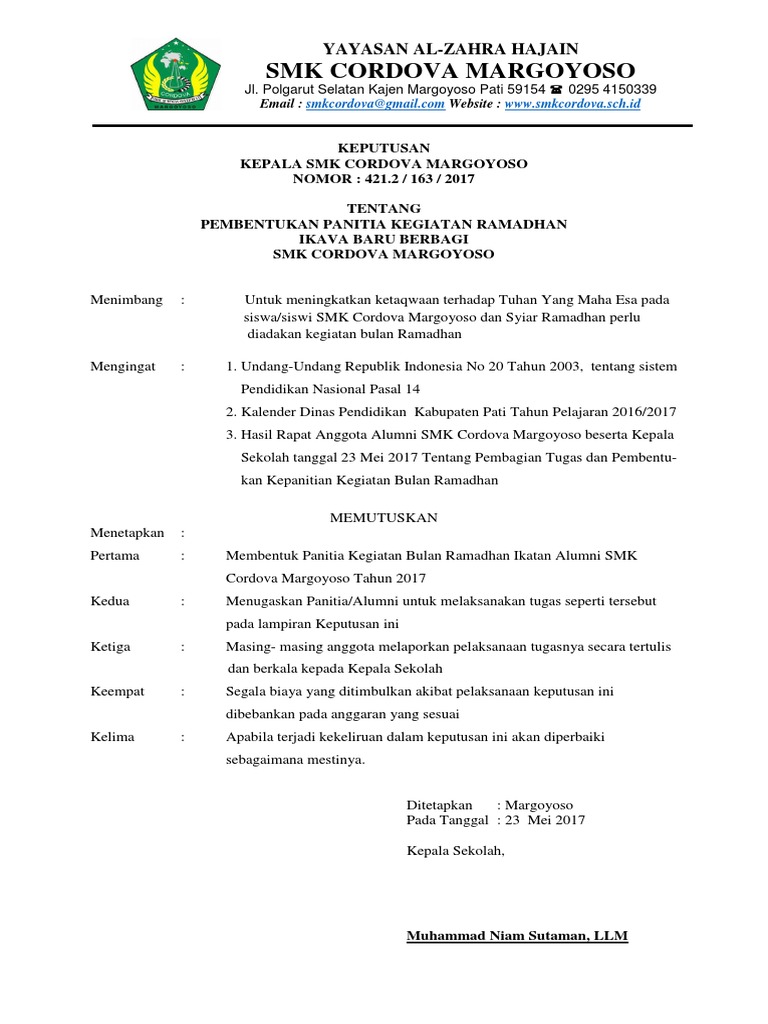 Sk Kepanitiaan Kegiatan / Surat Keputusan Panitia Bidikmisi Kip Kuliah Center Pobierz Pdf Z Docer Pl : Kegiatan pelatihan bisa kita siapkan sk sebagai tanda bukti kepesertaan.. Sk kepanitiaan dan rencana kegiatan peringatan hari jadi kabupaten madiun ke 445 dan hut ri ke 68 kecamatan dolopo kabupaten madiun tahun 2013. Bahwa dalam rangka pelaksanaan pesantren ramadhan 1438h perlu di bentuk kepanitiaan yang akan bertugas untuk mengatur jalannya kegiatan. Berisikan rangkain kegiatan di dalam acara tersebut, sejarah dibalik diadakan acara maupun tujuan dari laporan acara. Contoh surat keputusan (sk) kepanitiaan. Download sk panitia rehabilitasi asrama pondok pesantren pontren com.